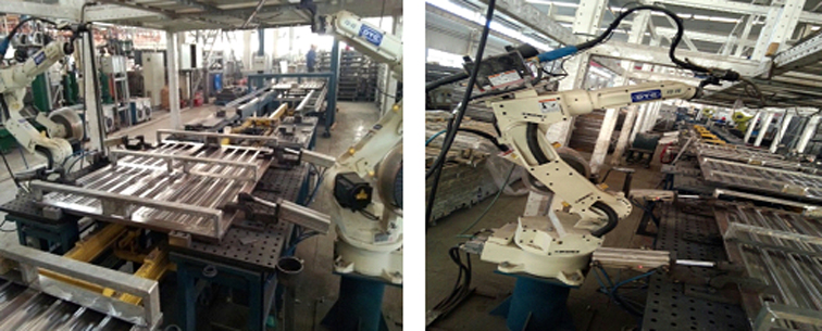 托盘焊接生产线:公司拥有3台切管机、6台自动焊接机器人、12台半自动CO2 自动保护焊机,专用工装流水线布置,人机合理结合,保证了焊接质量的稳定性。