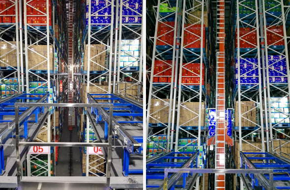 双深位堆垛机配合双深位货架,与单深位堆垛机形式相比,节省空间,提高了存储率。适用于货物品种相对单一,出入库效率高的情况。